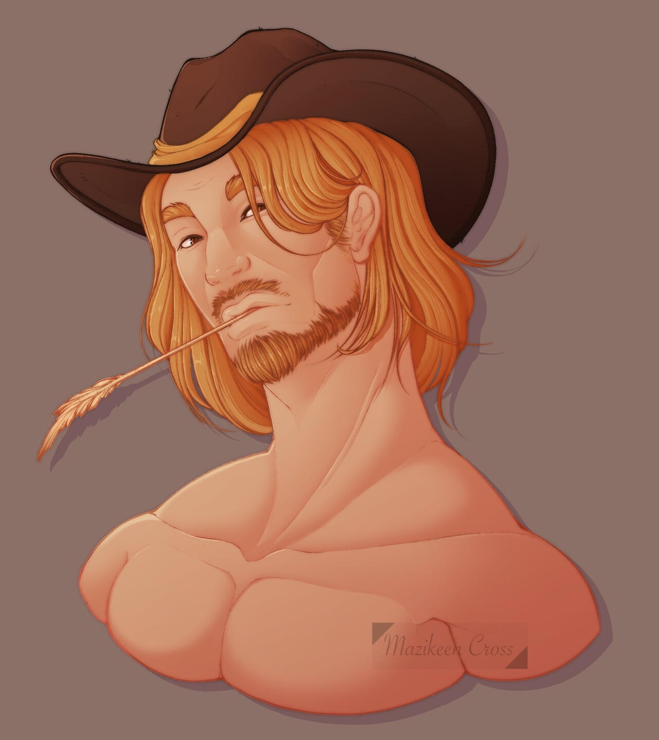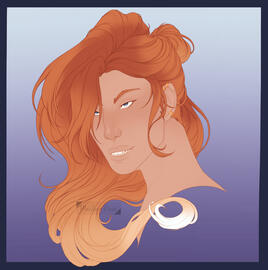 Character is drawn from the neck/chest up with no/flat colour background.